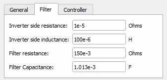 In this component tab, you can specify LC filter parameters of the simple battery inverter model.