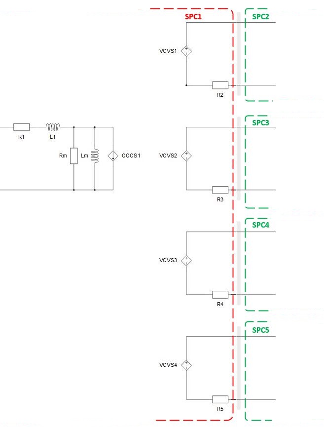 - Embedded coupling option - inserts a coupling component between primary winding and winding x, x being number of the winding at the secondary.