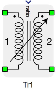 Description of the Single Phase Two Winding Variable Ratio Transformer component in Schematic Editor