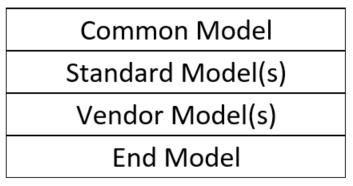 A device definition is a collection of three or more information models: a Common Model, one or more Standard or Vendor Models and an End Model as shown below. Each Information Model is uniquely defined and contains a well-known identifier and length. End Model is a special Model that signalizes the end of a SunSpec configuration.