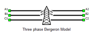 This section describes a Bergeron three phase transmission line based on a distributed parameter traveling wave model with lumped resistance.