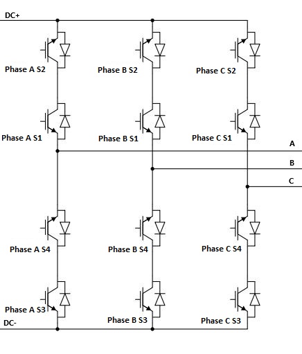 A schematic block diagram of the Three Phase Two-Level Current-Source Cycloconverter switching block with corresponding switch arrangement and naming is given in Figure 2.