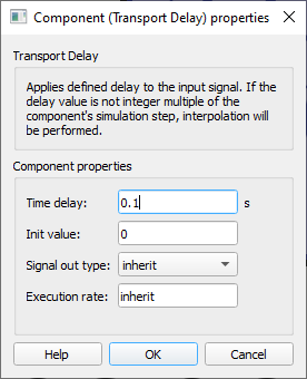 Transport delay component outputs the input signal after a specified amount of time.