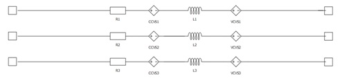 If Model definition is set to Sequence, transmission line R, L, and C parameters are defined by the user as per length matrices in the sequence domain. Sequence domain parameters are defines as nested python lists [[L00, L0d, L0i], [Ld0, Ldd, Ldi], [Li0, Lid, Lii]], where diagonal elements represent inductances of zero, positive and negative sequence respectively. Sequence model is defined only if the Number of phases is set to three.