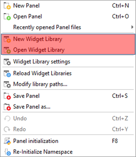 Library actions from the Panel toolbar menu (Figure 2).Figure 1. Create or Edit Widget Library