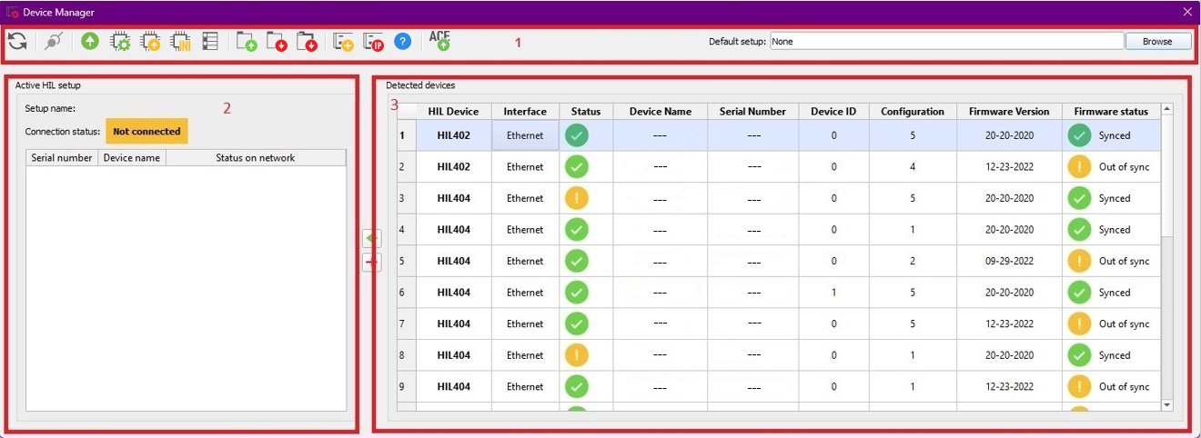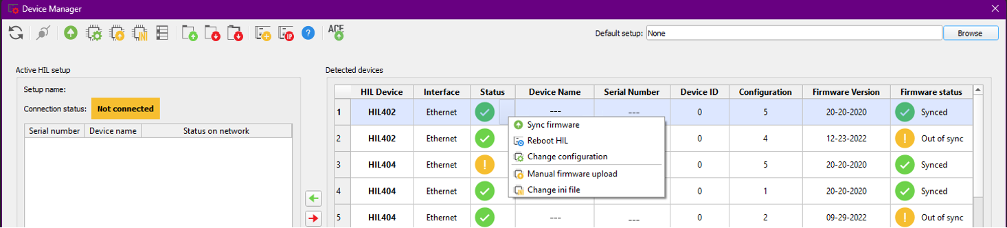 Open Device Manager. Upon start, Device Manager will automatically detect all connected HIL devices and show their firmware status, as described in Table 3