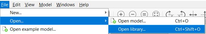 To open a library using open use the File -> Open library action (or use the Ctrl+Shift+O keyboard shortcut).