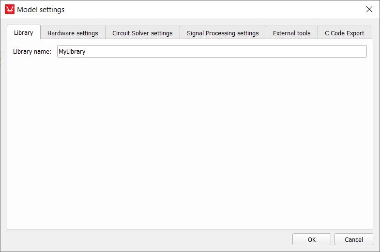 The library schematic options (including the name of the library) can be changed in Model settings.
