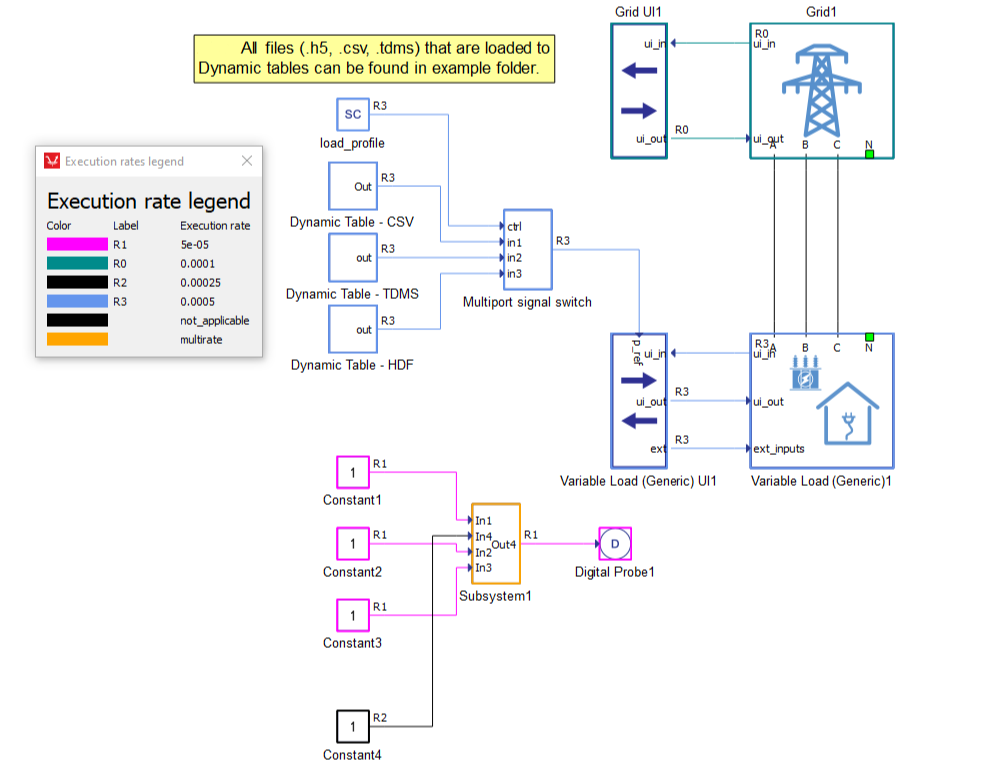 Parts of schematic (signal processing items and connections) at the same execution rate will be highlighted with the same color. To see which color represents some concrete execution rate, activate the Execution rate legend dialog using the F6 shortcut.