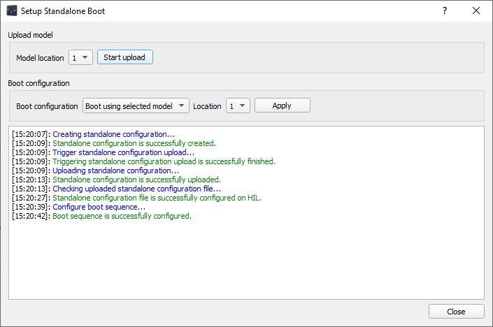 To change the standalone boot configuration, open HIL SCADA and follow steps 2 through 5. When you open HIL SCADA and load a new model, the simulation will be stopped and you will be able to use the HIL device in the usual way.