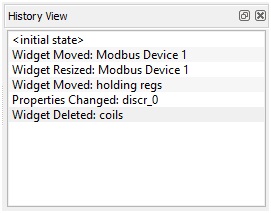 The History Dock (Figure 1)shows all actions which were executed (moving, resizing, deleting, copy/cut/pasting or changing widget properties). When you click the desired action in History Dock, Panel will return to the state in which it was after that action was executed.
