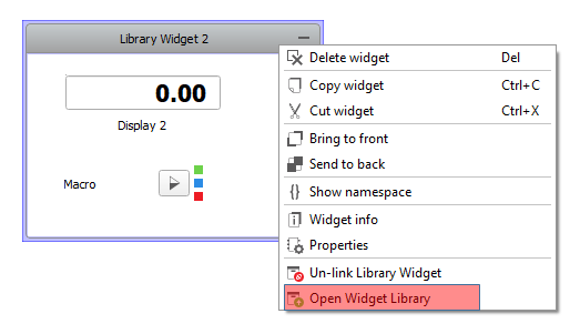 To easily open a Widget Library that is linked to the added Library Widget, click on the
