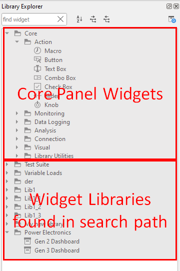 library search path including the default Core Panel widgets. Figure 1. Library Explorer dock