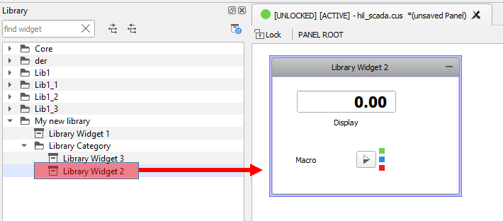 Library Widgets can be used in a Panel or another Widget Library by simply dragging and