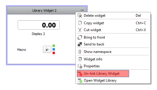 Un-link Library Widget context menu action (Figure 7). When a Library