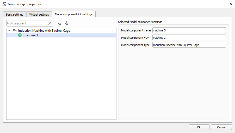Once a Model component is selected, the Library Widget is successfully linked to the