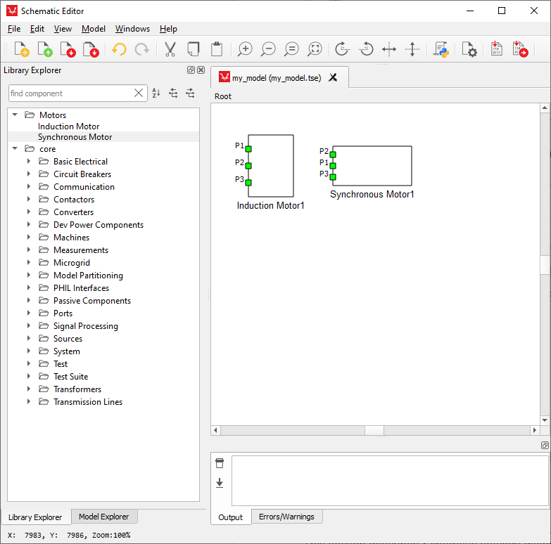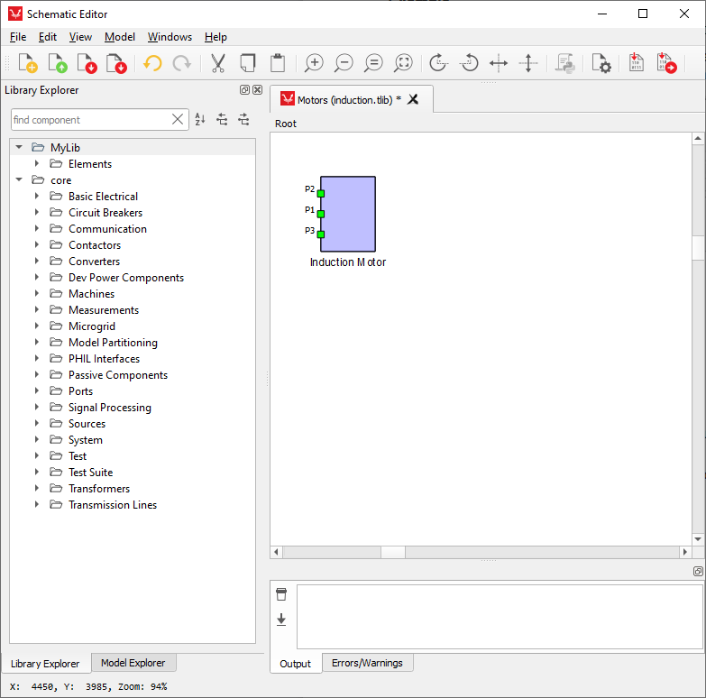 Let’s consider a “Motors” user library with two components in it: Induction Motor and Synchronous Motor.