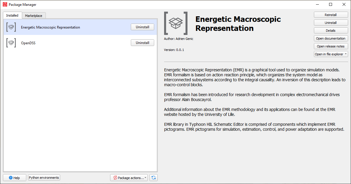 Overview of Installed/Marketplace tabs in Package Manager.