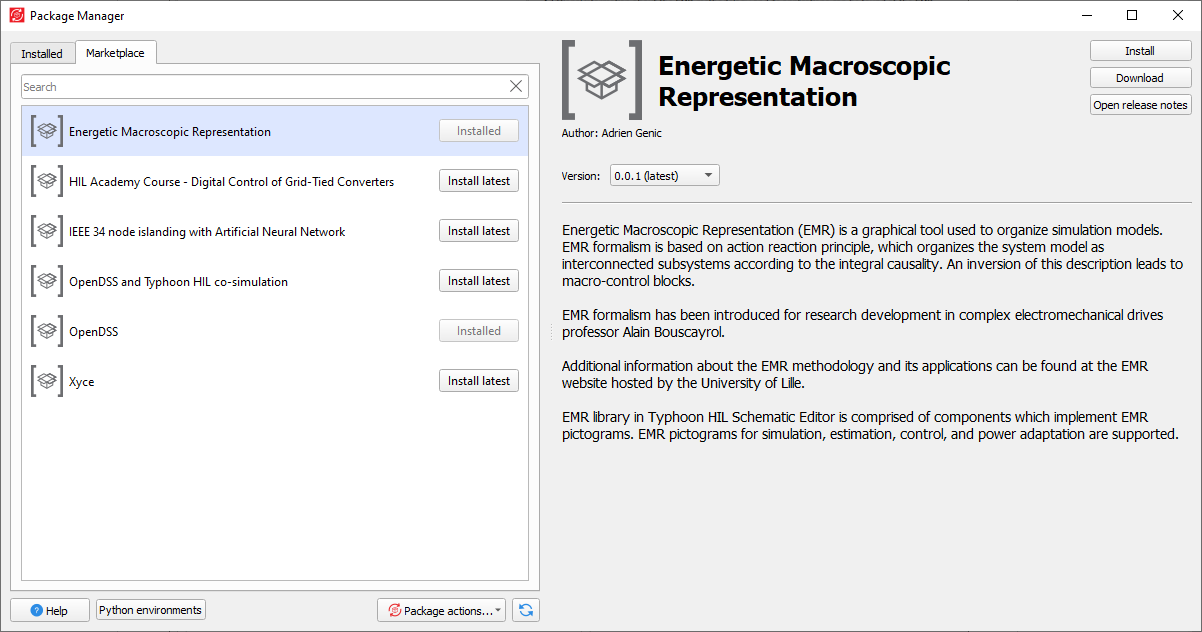 When the Marketplace tab is activated, Packages list shows packages that are currently available on the remote repository. You can also use the search bar for filtering available packages by their name (Figure 2).