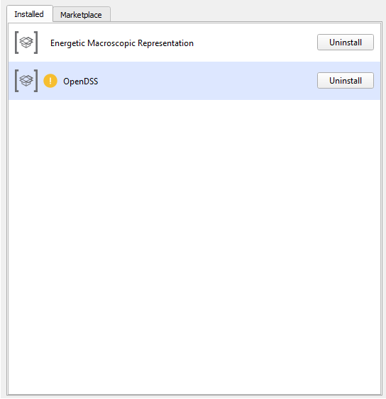 Depending on the currently selected tab, the list will contain either installed packages or packages available on the Marketplace.