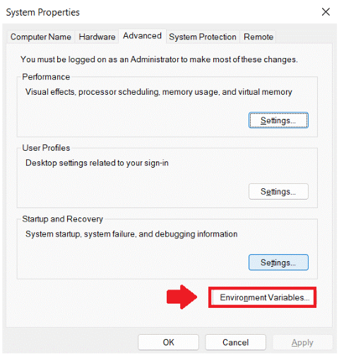 - Select “Environment Variables …”