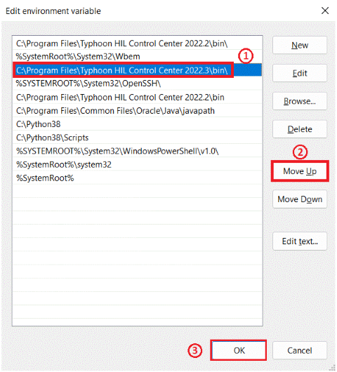 - Then select and Move Up the desired Typhoon HIL Control