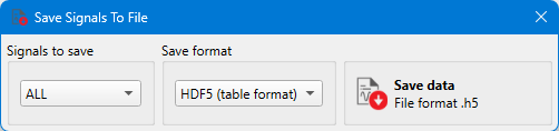 Figure 1. Signal Data Saving dialog with the all signals option selected