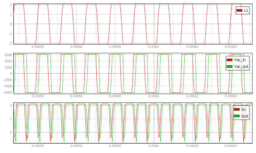 Figure 5 shows a model of the Dual-Active-Bridge converter. The switching frequency is set to 80 kHz, while the simulation step is set to 0.5 microseconds. This model is simulated using the Switch-level GDS oversampling feature. Figure 6 shows results observed from the simulation. As you can see, observed results are as expected and all waveforms have their expected shapes. So, it is possible to precisely simulate a DAB converter if Switch-level GDS oversampling is used, even in the case when the switching frequency is relatively large.