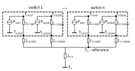 where n is the number of IGBT/diode pairs in the PESB. Finally, in the model with the baseplate, the IGBT's junction temperature equals: