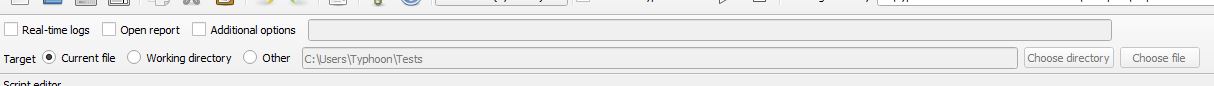 - Current file: The test run will consider only the tests contained inside the currently opened file in script editor.