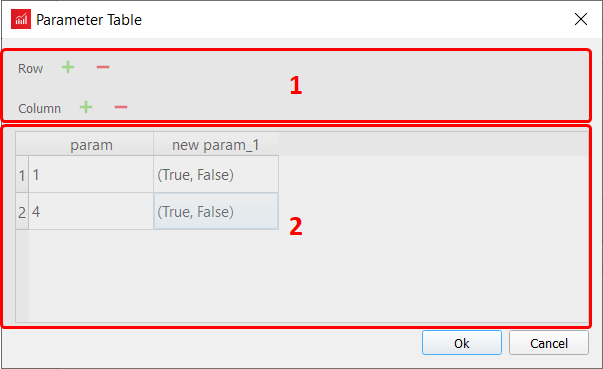Table param dialog contains 2 section: