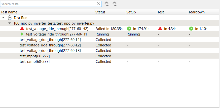 The Test Run panel also display, in real time, the status of the test run, with the results for tests that were already run and identifying the test currently running at the moment, as well as the other collected tests to be run in the test session.