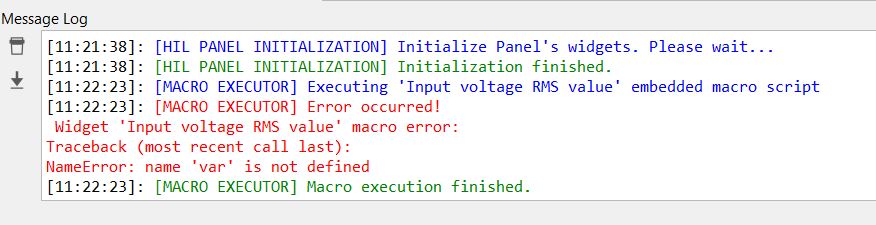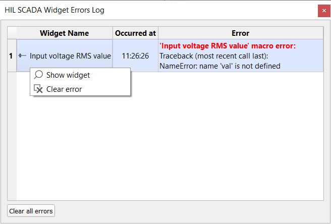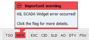 - An error message will be displayed in the HIL SCADA Widgets Errors Log window