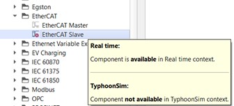 As an example, let’s observe the EtherCAT Slave component, which is not supported in TyphoonSim: