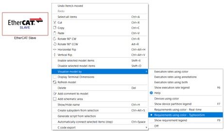 Model visualization by requirements in a corresponding simulation context (real-time or TyphoonSim) is very useful when we want to distinguish which components are available and which components are not available/supported in a corresponding simulation context in our model. Model visualization can be done in the following way: