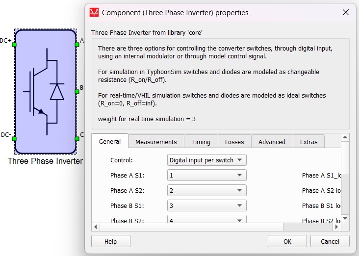 As a component's property with a specific real-time/VHIL context requirement example, we will use Losses calculation property of the Three Phase Inverter component.