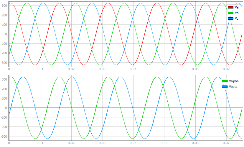 Electrical variables are transformed to αβ components using the transformation matrix: