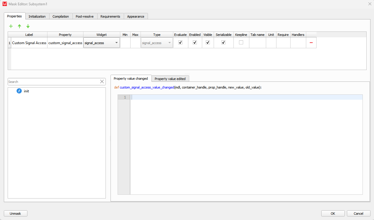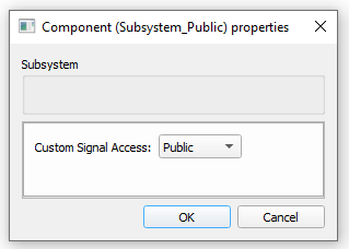 Signal access management allows you to change the visibility of signals in the model. This can be enabled by adding the 'signal_access' property on your component properties or by changing the value of already existing signal access properties on some components.
